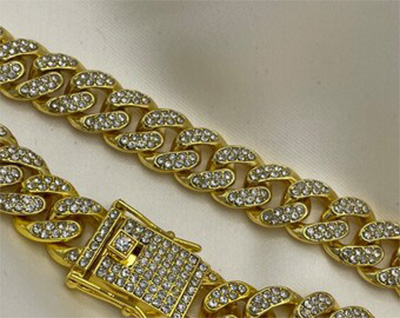 完成后,即可获得如图所示的成品——镶嵌宝石的古巴链。