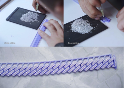 如需镶嵌宝石,可在成型后的链条上手工镶嵌。